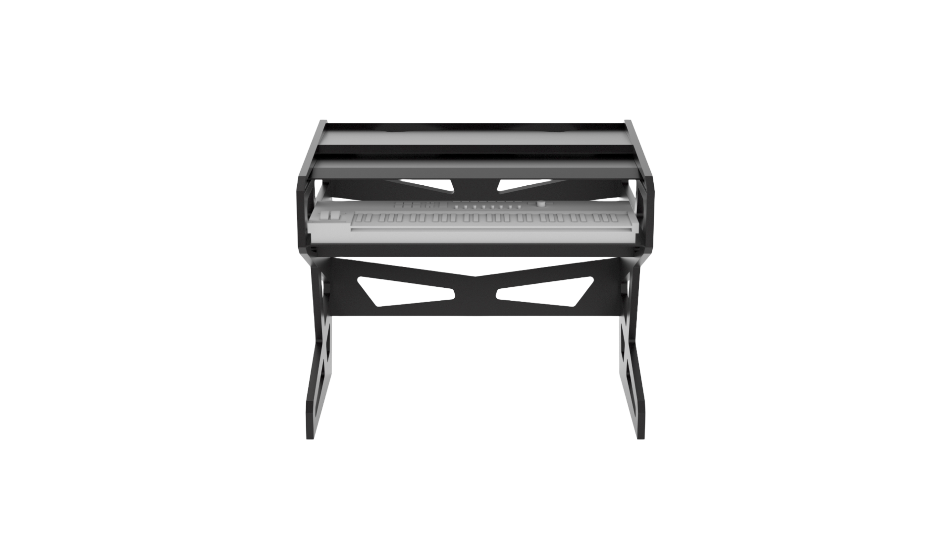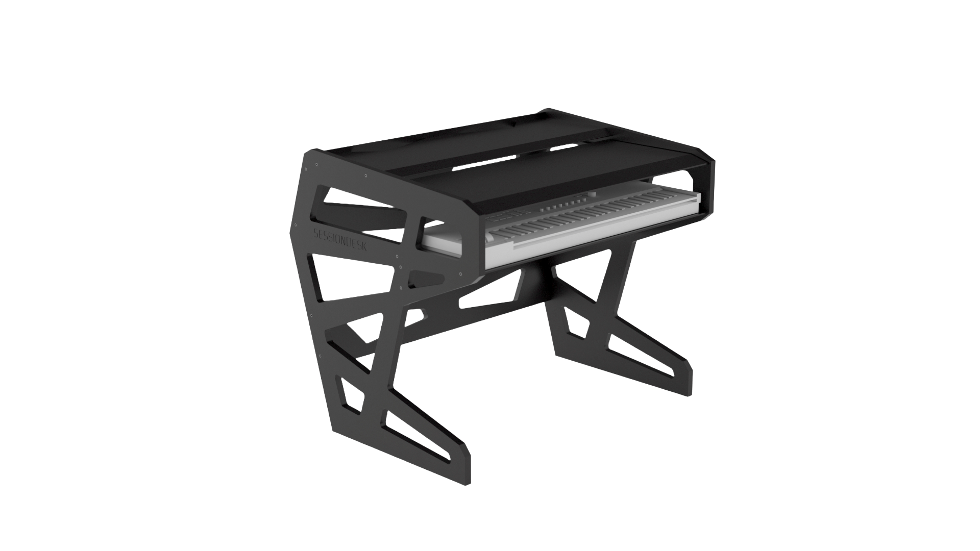 Acoustically optimized workstation for music composing Ergonomic setup for optimal posture For keyboards up to 61 keys Retractable tabletop for immediate keyboard access Durable and innovative construction Easy assembly Overall height can be adjusted