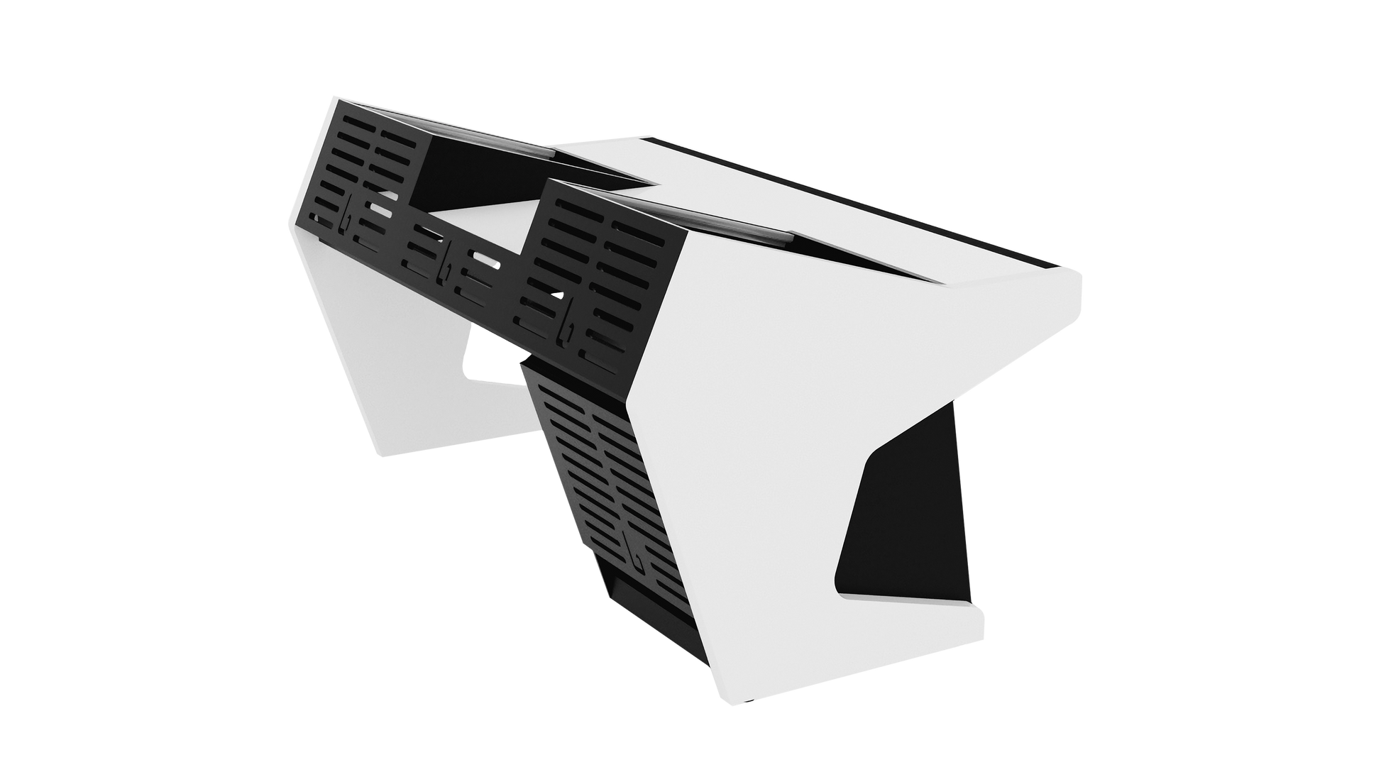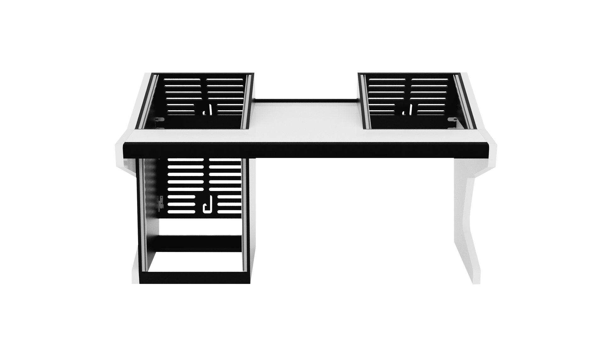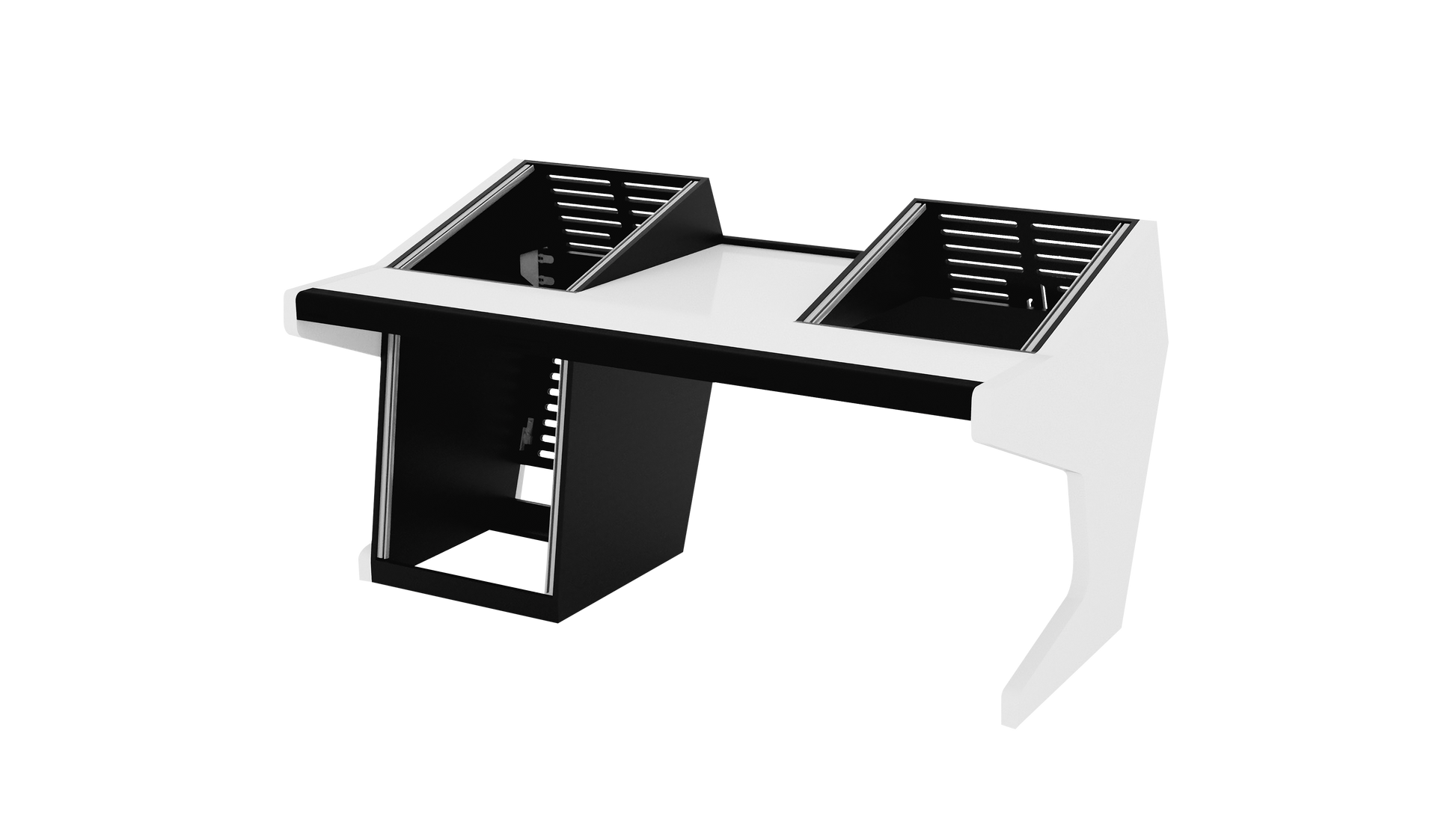 The Trio provides the most space for your recording and mastering gear. Together with three lower racks it gives you up to 72RU of rackspace. It is often used in professional studios, where every element of the signal chain must be easy accessible. The SD13 150cm keyboard drawer is optionally available.