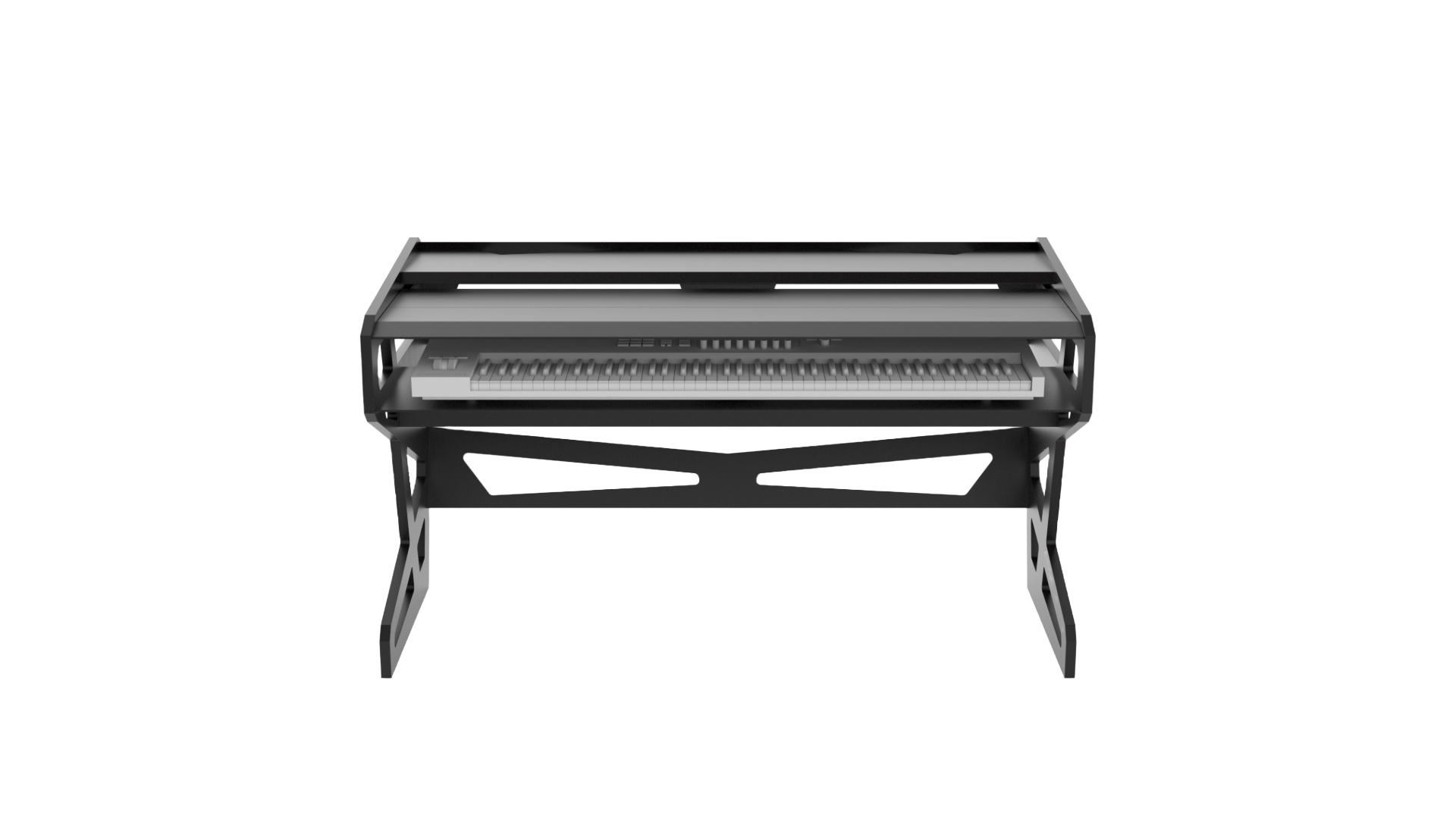 Acoustically optimized workstation for music composing Ergonomic setup for optimal posture For keyboards up to 88 keys Retractable tabletop for immediate keyboard access Durable and innovative construction Easy assembly Overall height can be adjusted
